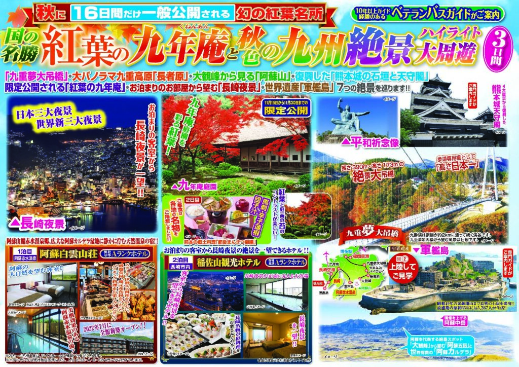 国の名勝 紅葉の九年庵と九州絶景ハイライト3日間