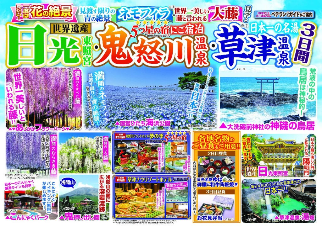日光東照宮・鬼怒川温泉・草津温泉3日間