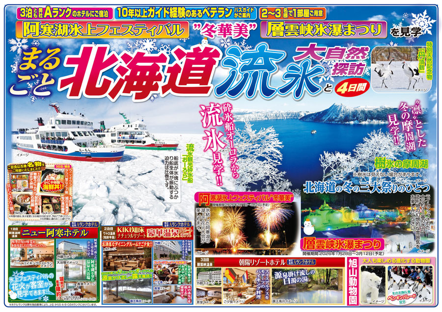 冬のまるごと北海道流氷と大自然探訪4日間
