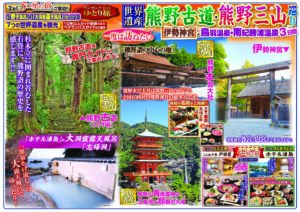 世界遺産 熊野古道・熊野三山巡り 伊勢神宮と鳥羽温泉・南紀勝浦温泉3日間