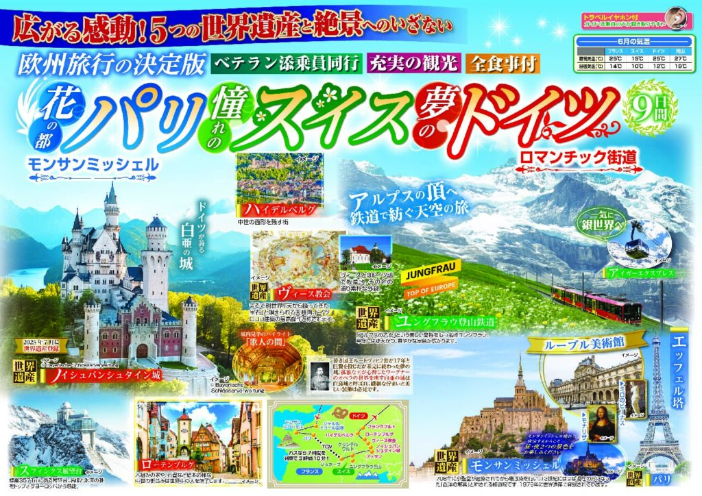 花の都パリ 憧れのスイス 夢のドイツロマンチック街道9日間