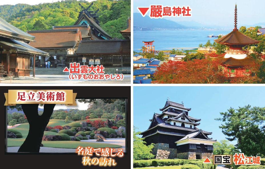 出雲大社・厳島神社両参り松江・足立美術館 秋彩の山陰山陽3日間