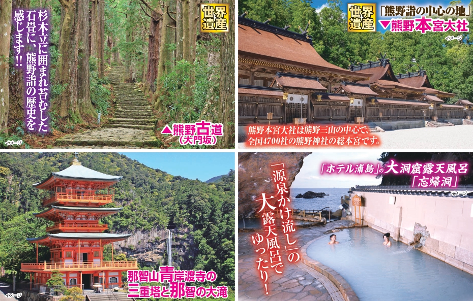 世界遺産 熊野古道・熊野三山巡り 伊勢神宮と鳥羽温泉・南紀勝浦温泉3日間