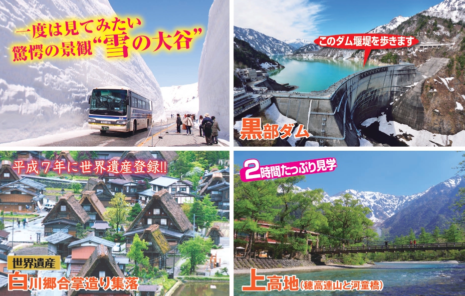 春の立山黒部アルペンルート・雪の大谷と白川郷・上高地3日間