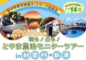 【富山県外にお住まいの親子限定】海も!山も!とやま農泊モニターツアーin利賀村&新湊 2泊3日